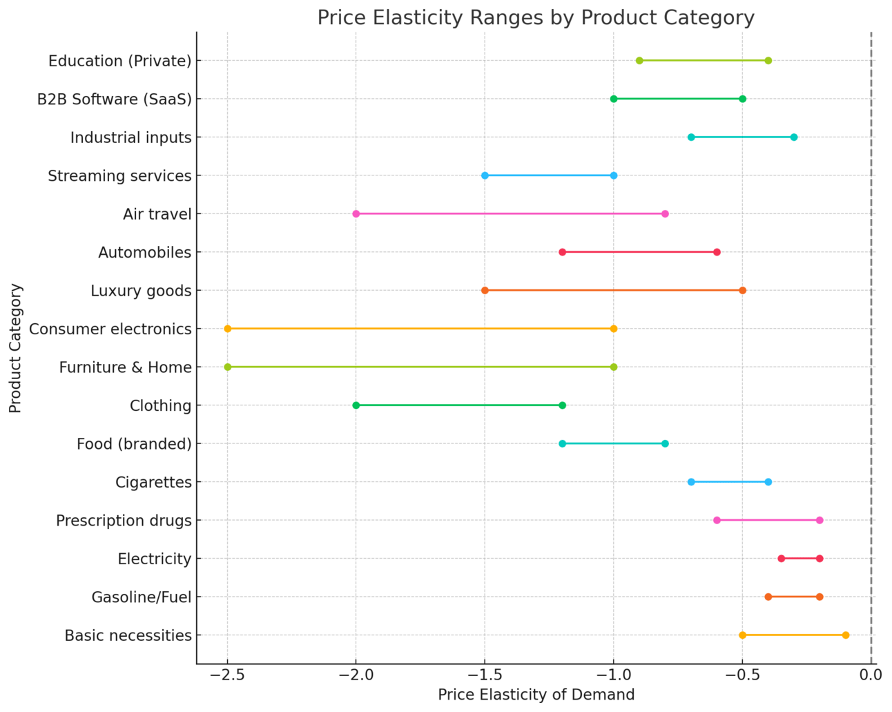 Here’s a benchmark of elasticity ranges across industries: